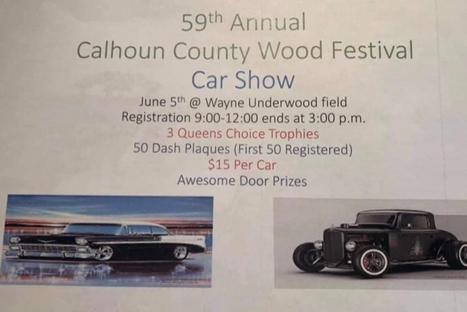 The Calhoun County Wood Festival Pageants will be held on Tuesday, June 1st 4:00pm at the Calhoun County Park Barn.